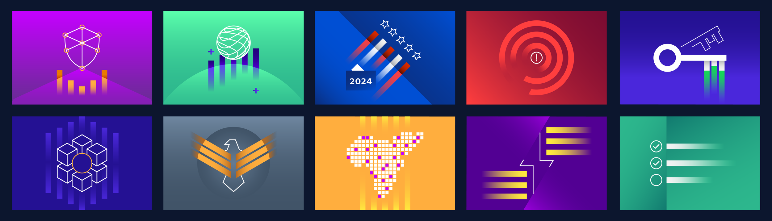 A set of ten graphics was created to show various problem sets in the program. They each required a unique color but still needed to look cohesive as a group. These ten graphics all featured gradient backgrounds and used a set of lines as a unifying feature.
